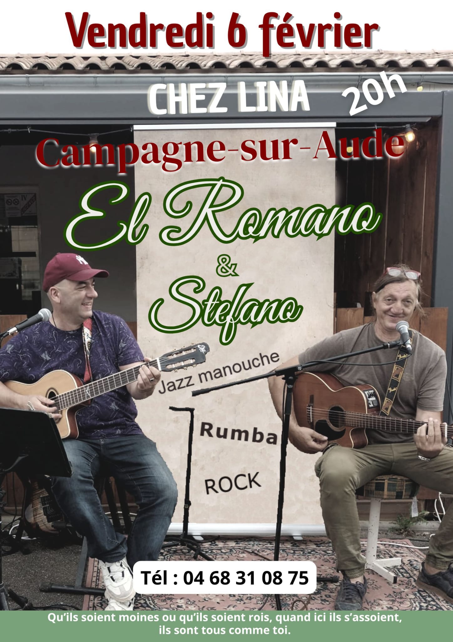 EL ROMANO en concert chez Lina à Campagne-sur-Aude le samedi 7 janvier 2023 à 19h